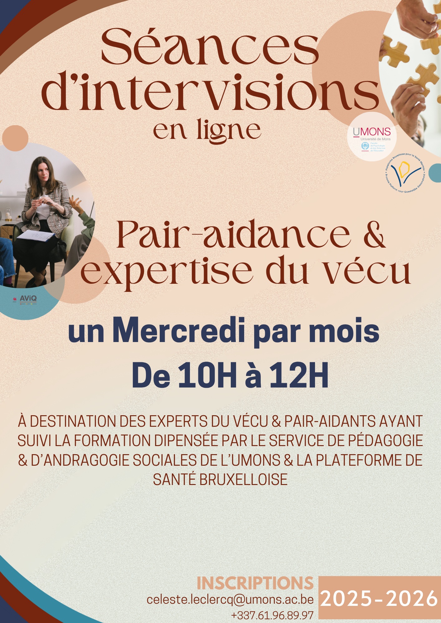 A destination des experts du vécu & pair-aidants ayant suivi la formation de la Plateforme Bruxelloise pour la Santé Mentale ou de l'UMons.
